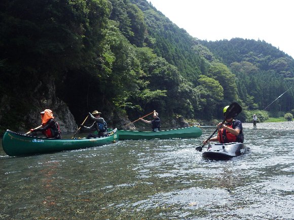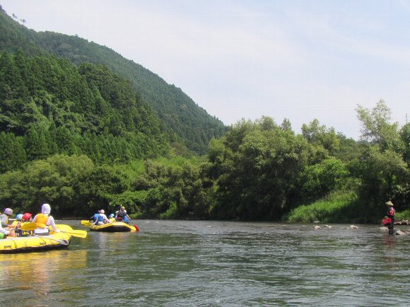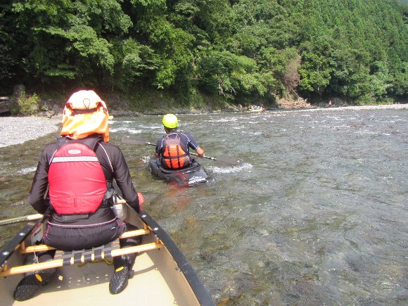 釣り師もけっこう入っているので、・・・・あのラフトについて行こう(笑) |
