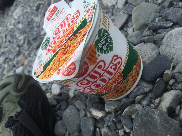 ペットボトルを川の水で冷やしながら・・・・ |