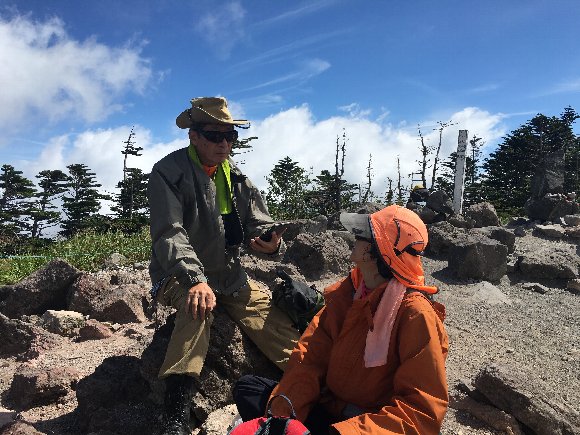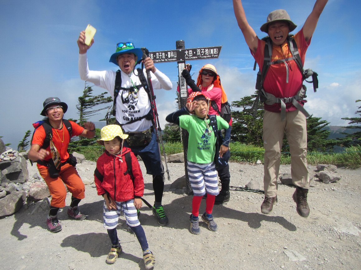 「皆の者よくやった、登頂成功だ 記念写真も撮ったし、帰ろうかぁ」