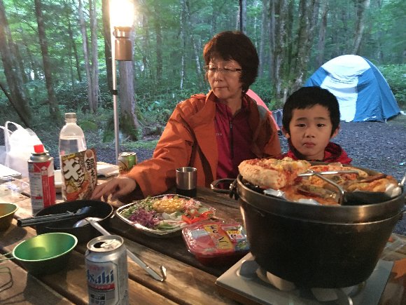 北横岳の後木曾御岳山でキャンプ 翌日に自然湖でカヌー に お付き合いする事になった。