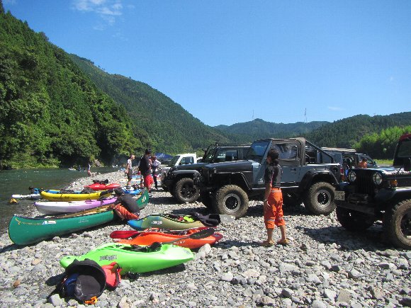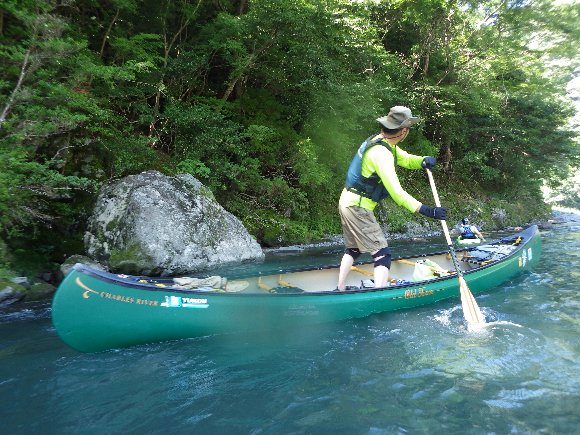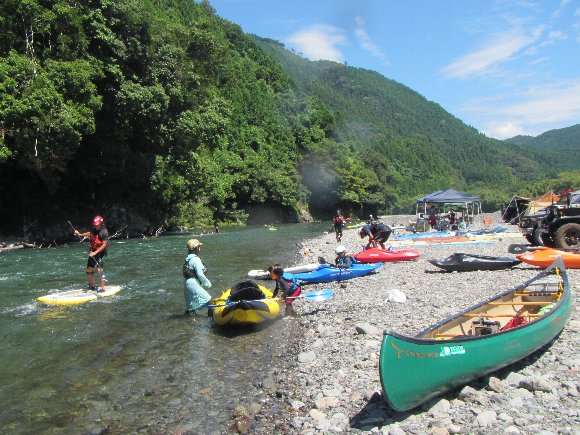 川流れ、エディインの練習や、カナディアン再乗艇など 多くの事ができた 充実した 川下りであった。