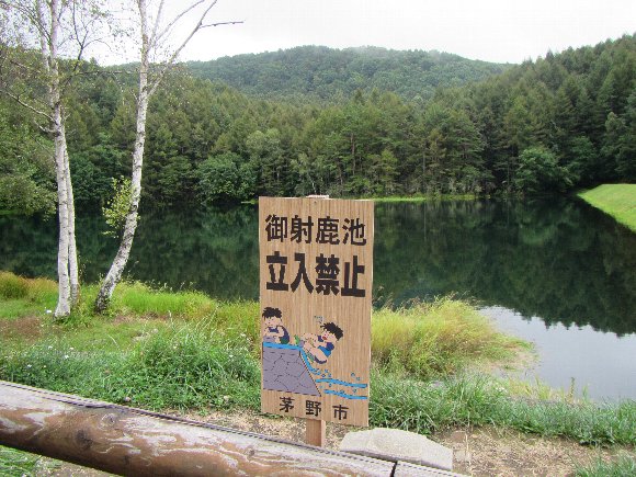 思ったよりも小さい池、 曇りの為、CMほどの美しさは見ることができなかった。