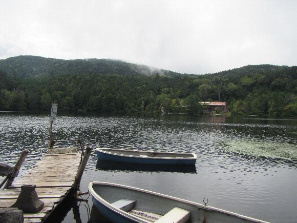 白駒荘ボート、カヌー乗り場 一昨年漕いだカナディアンカヌー |