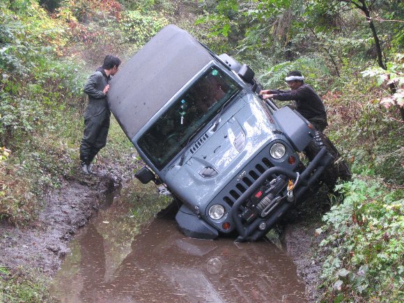 大岩場 三菱JEEP 横転の危機 |