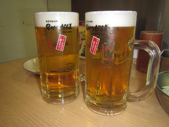 元祖串かつ だるま のソースの二度漬けは禁止やで! ビール |