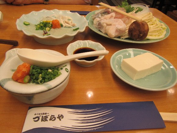 てっさ と てっちり を 一人前 頼み、 づぼらやハイボールを飲む |