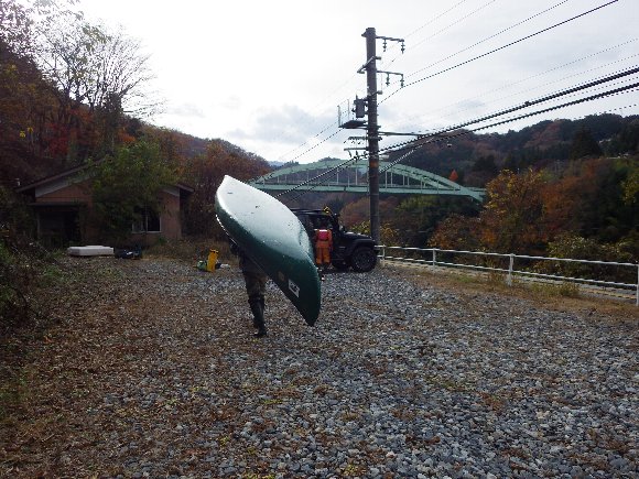 唐笠駅へ カヌーを運ぶ |