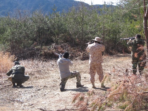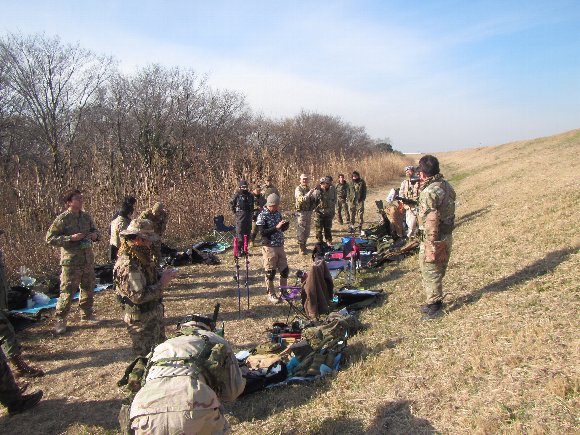 試射 銃調整中の皆さん |