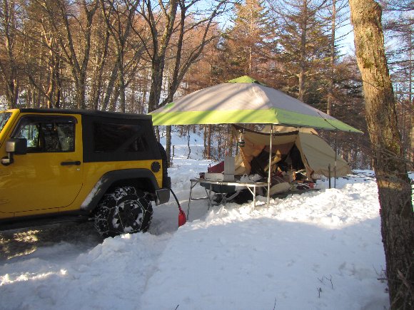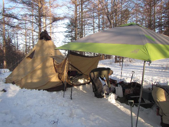 ベースキャンプを設営、のんびり雪遊びができそう・・・・。