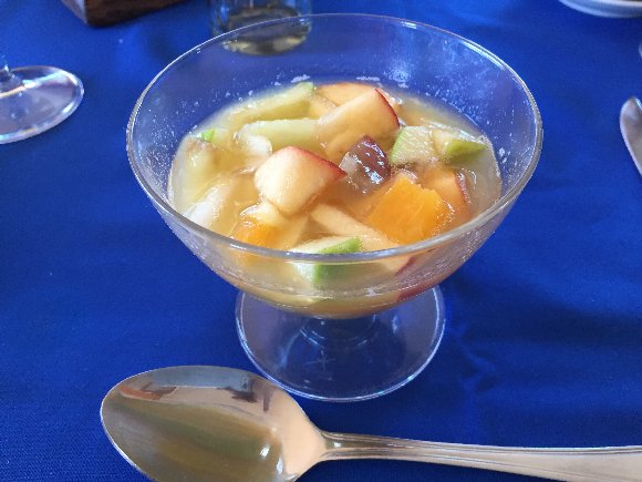 国境のレストランで食事。 朝食によく出る フルーツサラダ |
