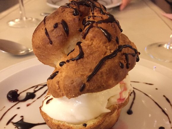 B&Bのため近くのホテルのレストランで食事をとる。おいしい