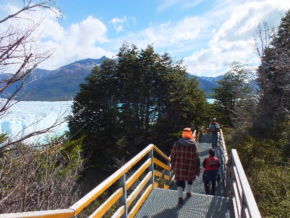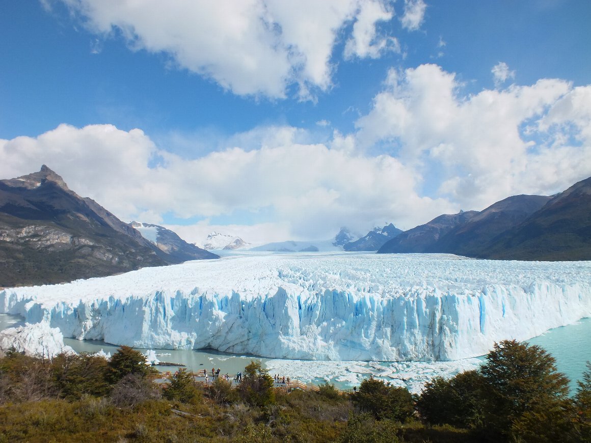 展望台からのペルトモレノ氷河。一日2mづつ せり出し崩落している。生きている氷河と言われるゆえんだ。