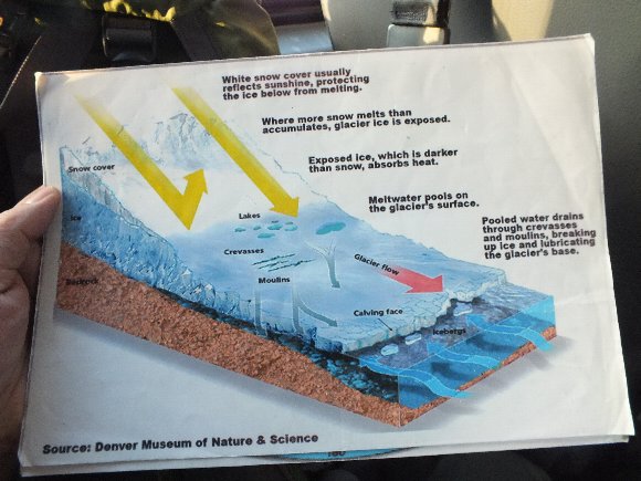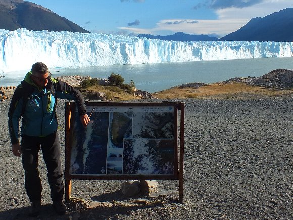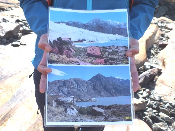 地ガイドが数年前の写真を見せてくれた。氷河の後退だ。 |
