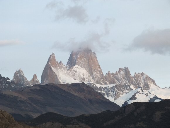 でた!!フィッツロイ。パタゴニアの象徴だ アウトドアブランドの パタゴニアのモチーフになっている |