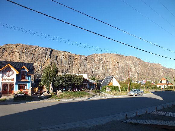 街のはずれで 顔を出した フィッツロイ!! 後ろには チャルテンの街並みが見える。