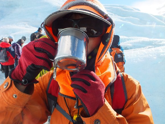 氷河トレッキングの始まり。 流れている表面のきれいな水を飲む。