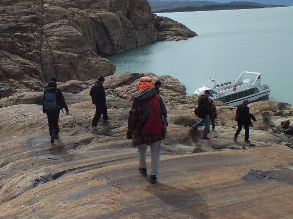 クルーズ船でトレッキングのスタート地点に行く |