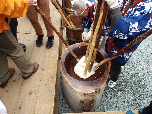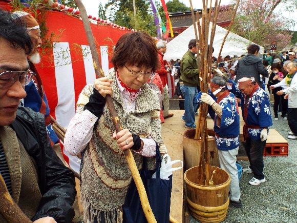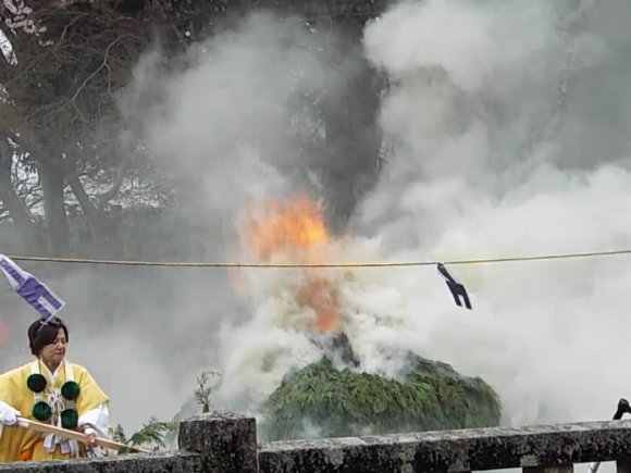 修行僧たちが、ほら貝を鳴らし 行進 お炊きあげが行われる。
