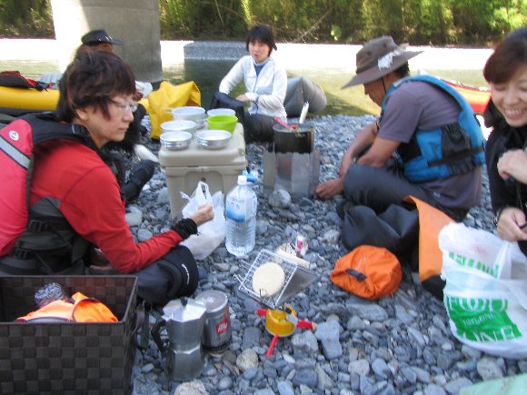 河原でパンを焼き |