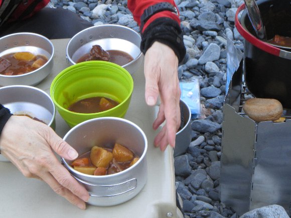 、ビーフシチューをとりわけ |