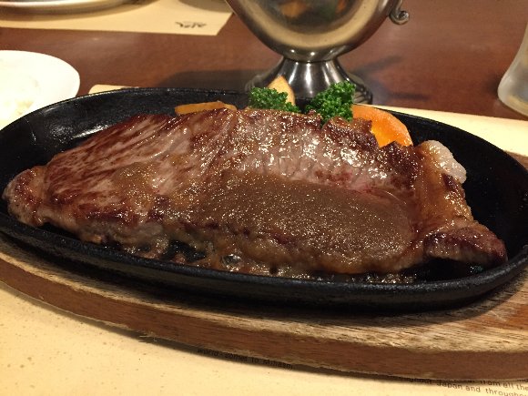 サーロインステーキ、のわりには 肉が硬めで ちょっと残念。