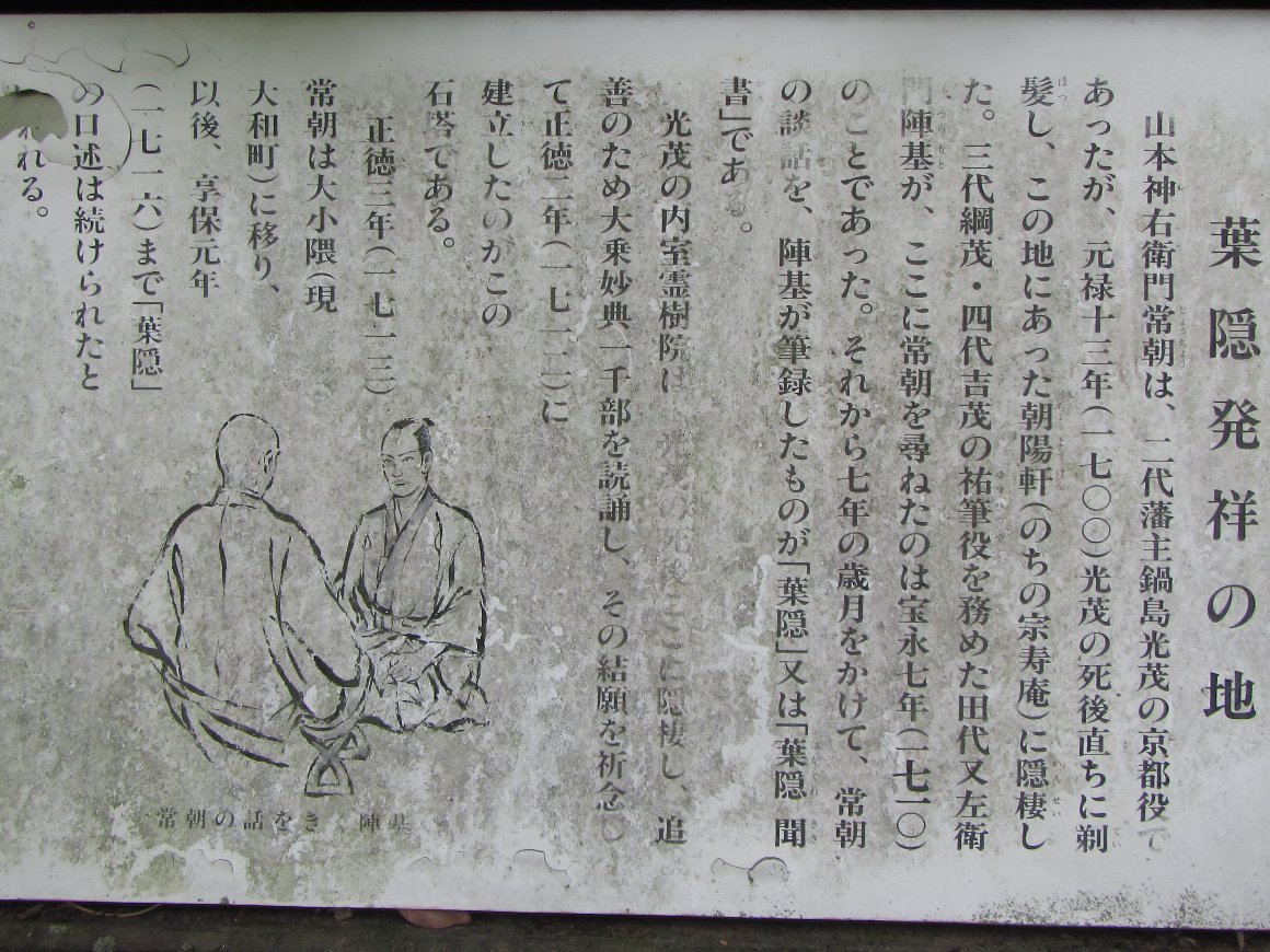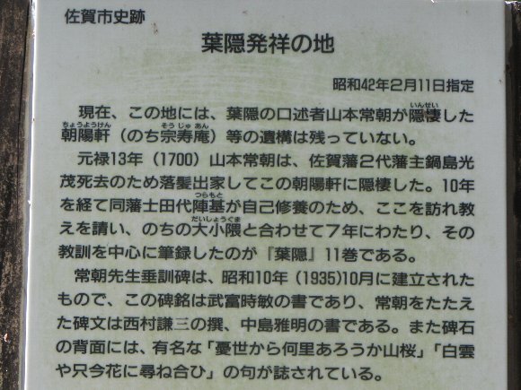 葉隠発祥の地の説明文があり |