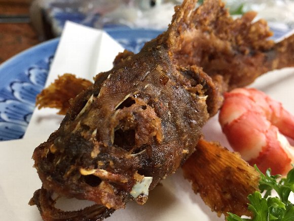 カサゴのから揚げ せんべいみたいにカリカリ |
