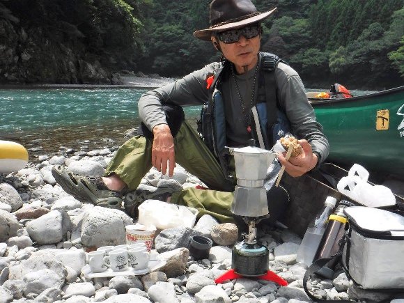![]() おにぎりを食べながら イタリアンエスプレッソコーヒーを作る |