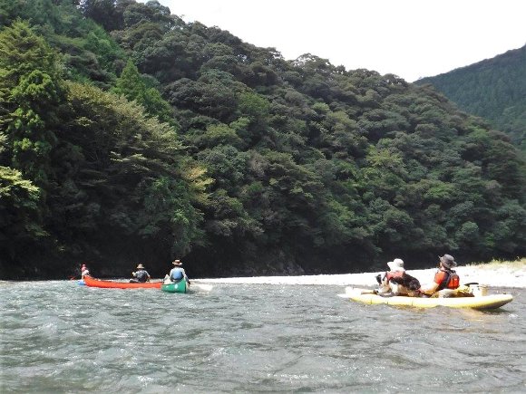![]() カナディアン2艇 ダッキー1艇で のんびり漕ぐ |
