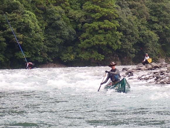 釣り師を避けるコースを見極めながら進む |