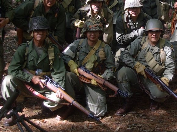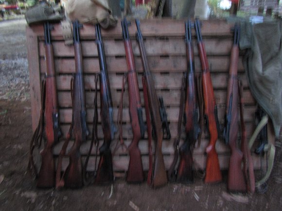 ズラリと並ぶM1ライフル 一丁だけ違うものがありますが・・・・・・わかるかなぁ〜(笑) |