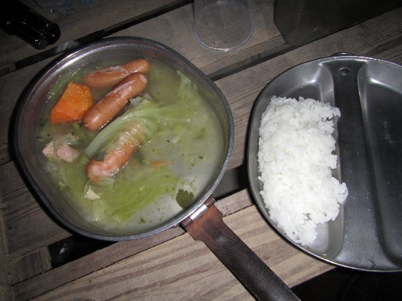 フィールドオーナーから支給の夕食 私は小食なので 半分の量 |