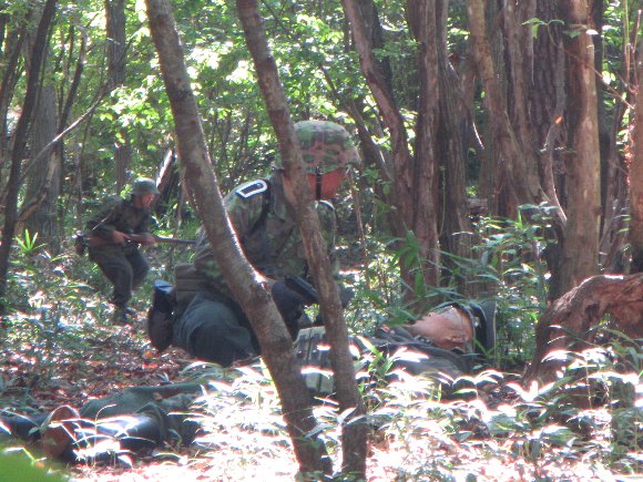 一進一退の状態から、 ハルは敵迫撃砲陣地に接近、 グレネード投てき後、突入し 敵指揮官以下6名を捕虜に