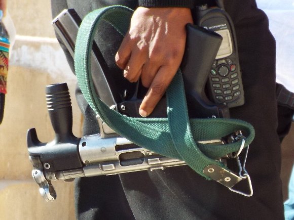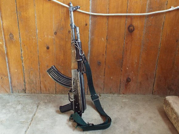 ![]() 警備の警察官 カラシニコフを携帯 |