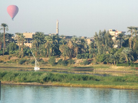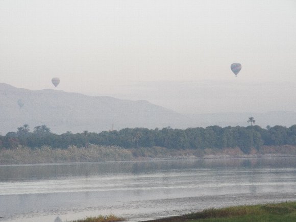 ホテルの部屋から ナイル河と熱気球 |
