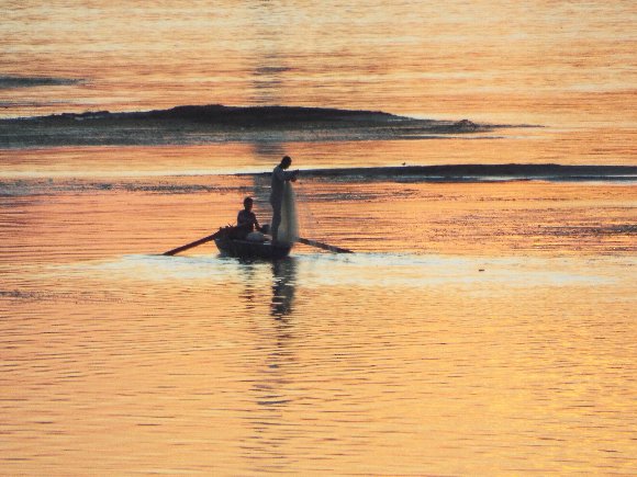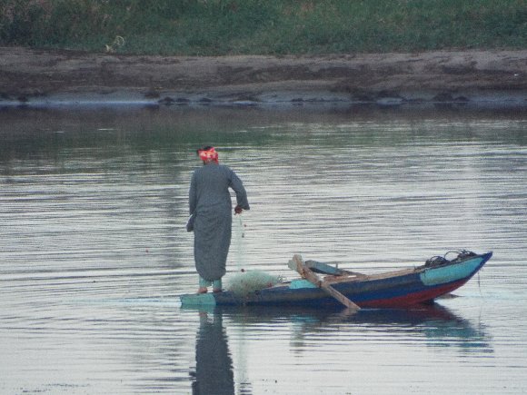 ナイル河で漁をする家族 |