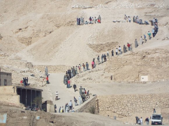 バスでルクソール西岸の王家の墓方面へ向かう。