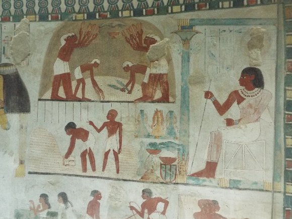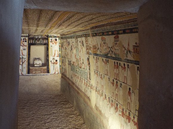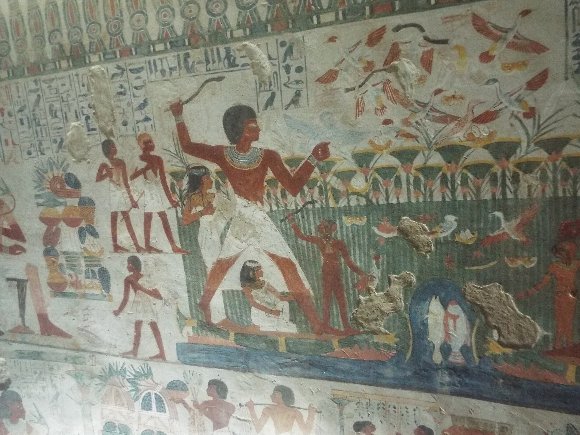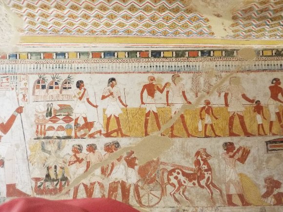 墓の内部の壁に描かれた絵は保存状態が良く、色も残っていて 数千年前の作品とは思えないほどだった。