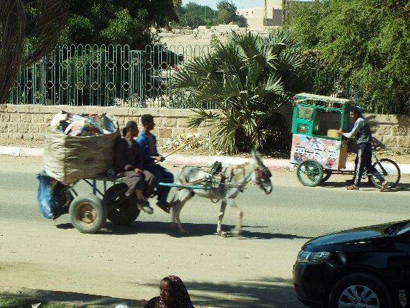 街には、ロバ車、人力車、三輪自動車など いろいろ走っている。