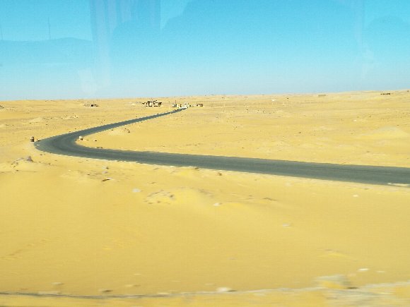 昨日来たヌビア砂漠の道を、アスワンに向かって戻る