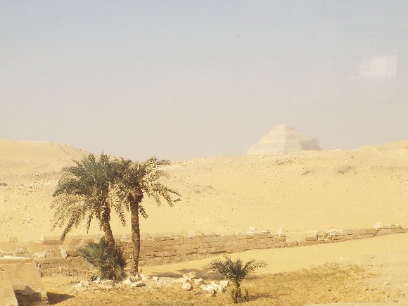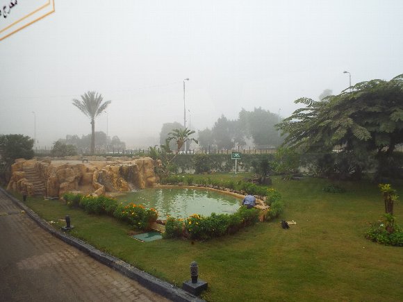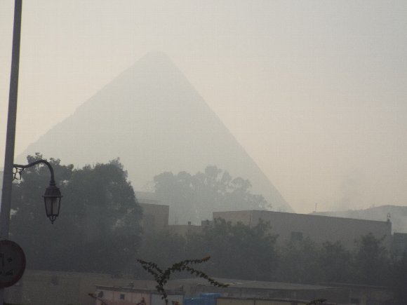 ギザのホテルの部屋からピラミッドが見えるはずだったのに・・・濃いモヤで全然見えない。