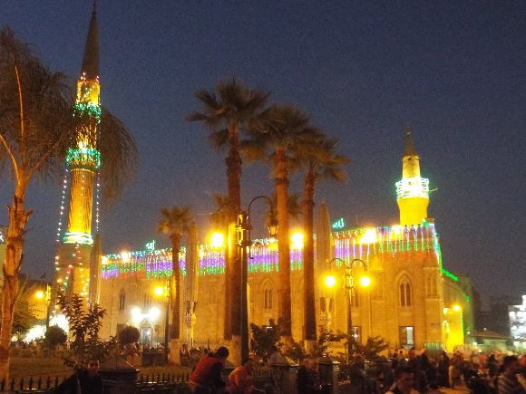 キンキラキンの照明で ド派手な モスク |