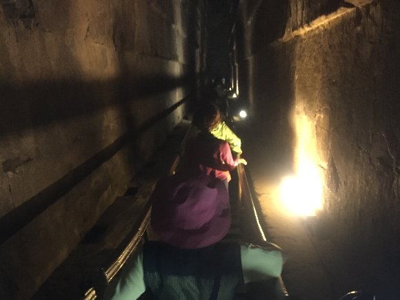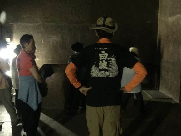 ヘッドランプを付けて、玄室内部に入る (撮影禁止なのでカメラは持ち込めない)