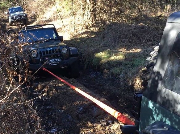 2番 沼ではないが 乾いた土の下は泥濘 ボスTJ スタック |