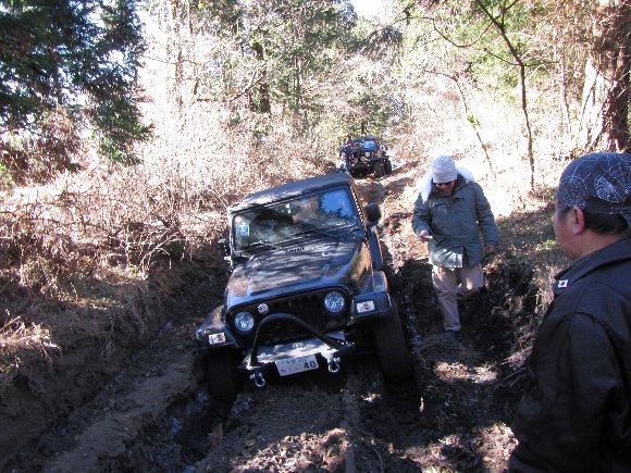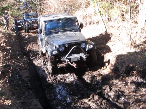 ![]() ワダチを避けて走行 三菱JeepのTさん |