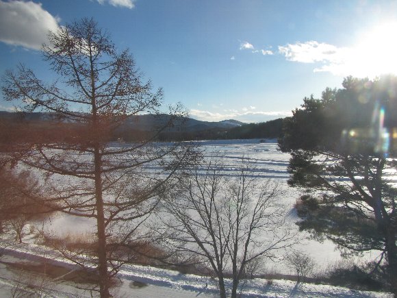 部屋から女神湖の眺め 氷上走行コースも見える |