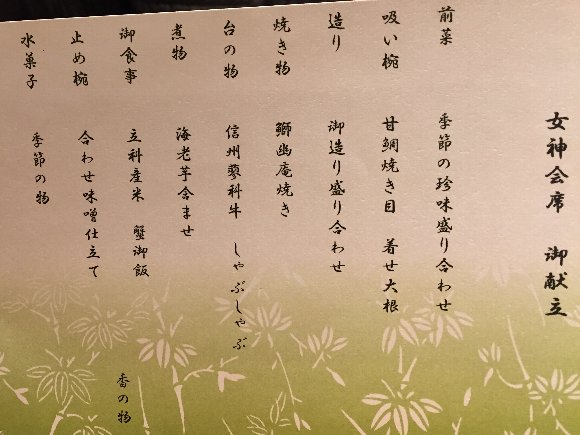 女神会席 お品書き |