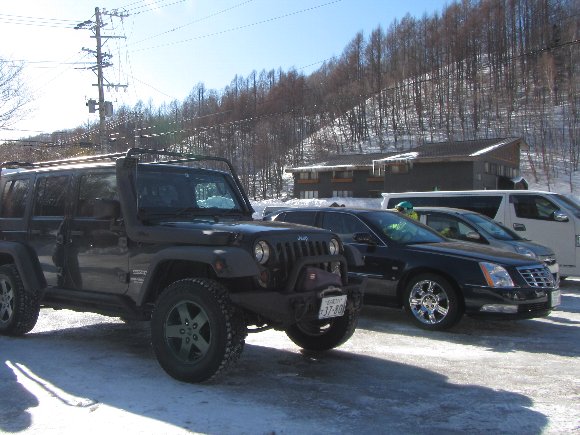 歩いて5分のゲレンデへと、車で向かう(笑)