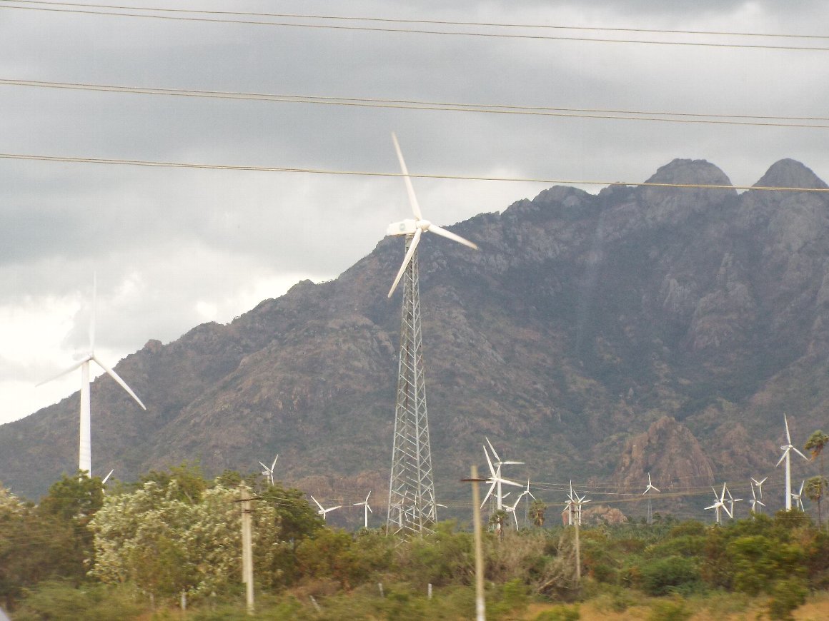 6日目〜7日目 高い稜線のニルギリ山脈 風力発電の風車が乱立している |