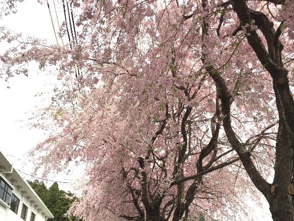 駐車場の枝垂れ桜は、満開であった。